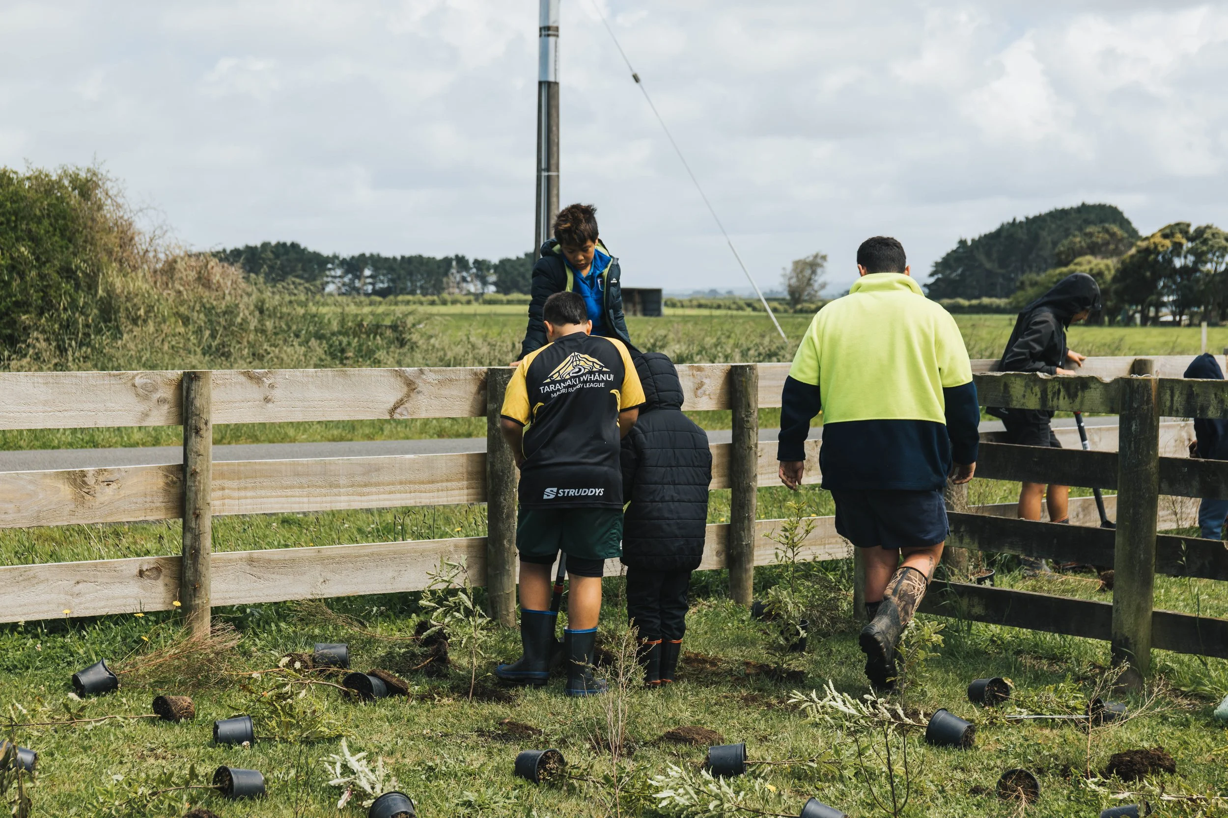 Te Kura o Nga Ruahine Rangi students got right into their mahi digging the holes for the trees, sprinkling compost before laying each tree and making sure it was secured in the ground.